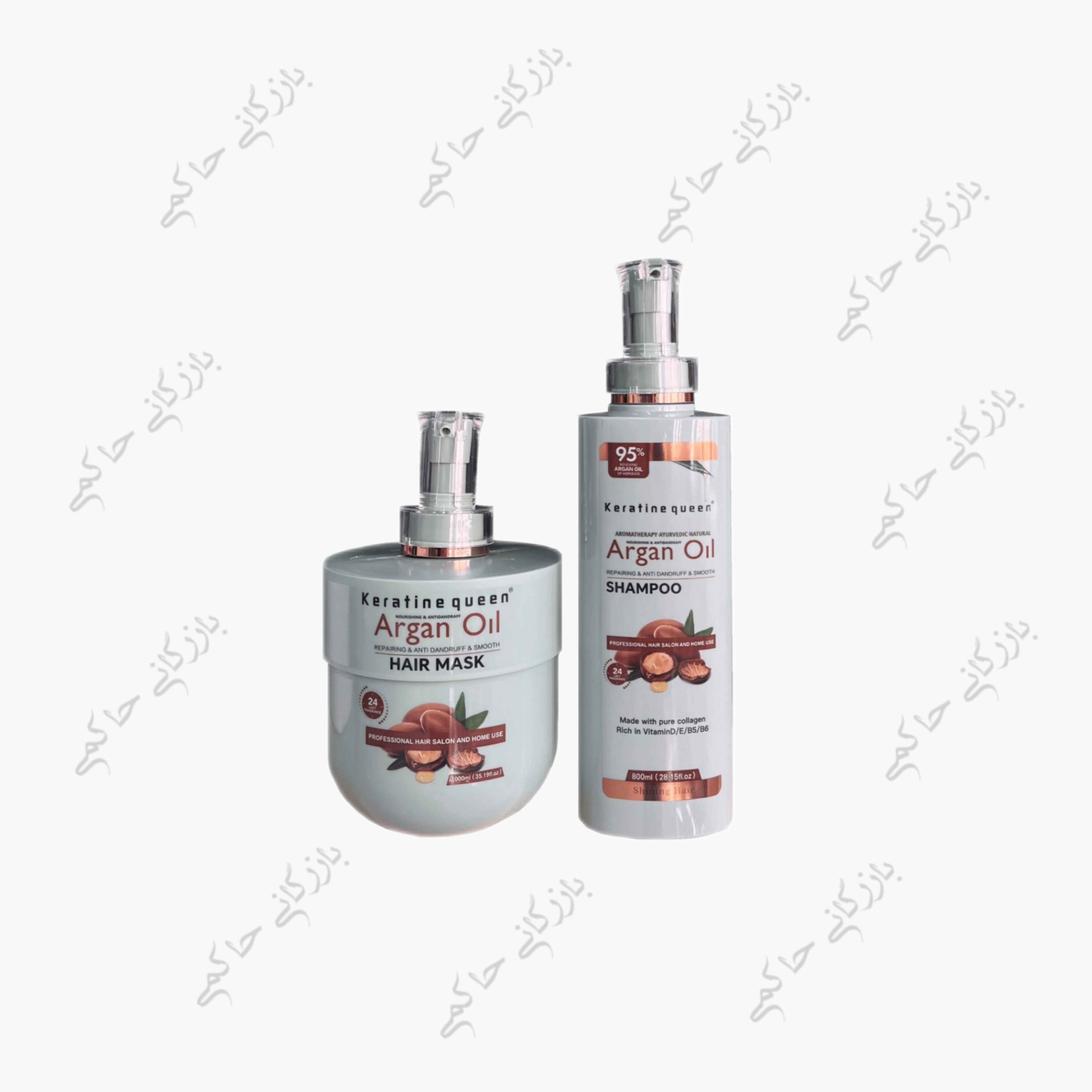 پک شامپو و ماسک مو آرگان اویل کراتین کویین(واردات قانونی جلفا) پروتئینه‌ی مرطوب‌کننده و ترمیم‌کننده حاوی روغن آرگان 1000 میلی‌گرم | دارای قیمت عمده برای خریداران عمده