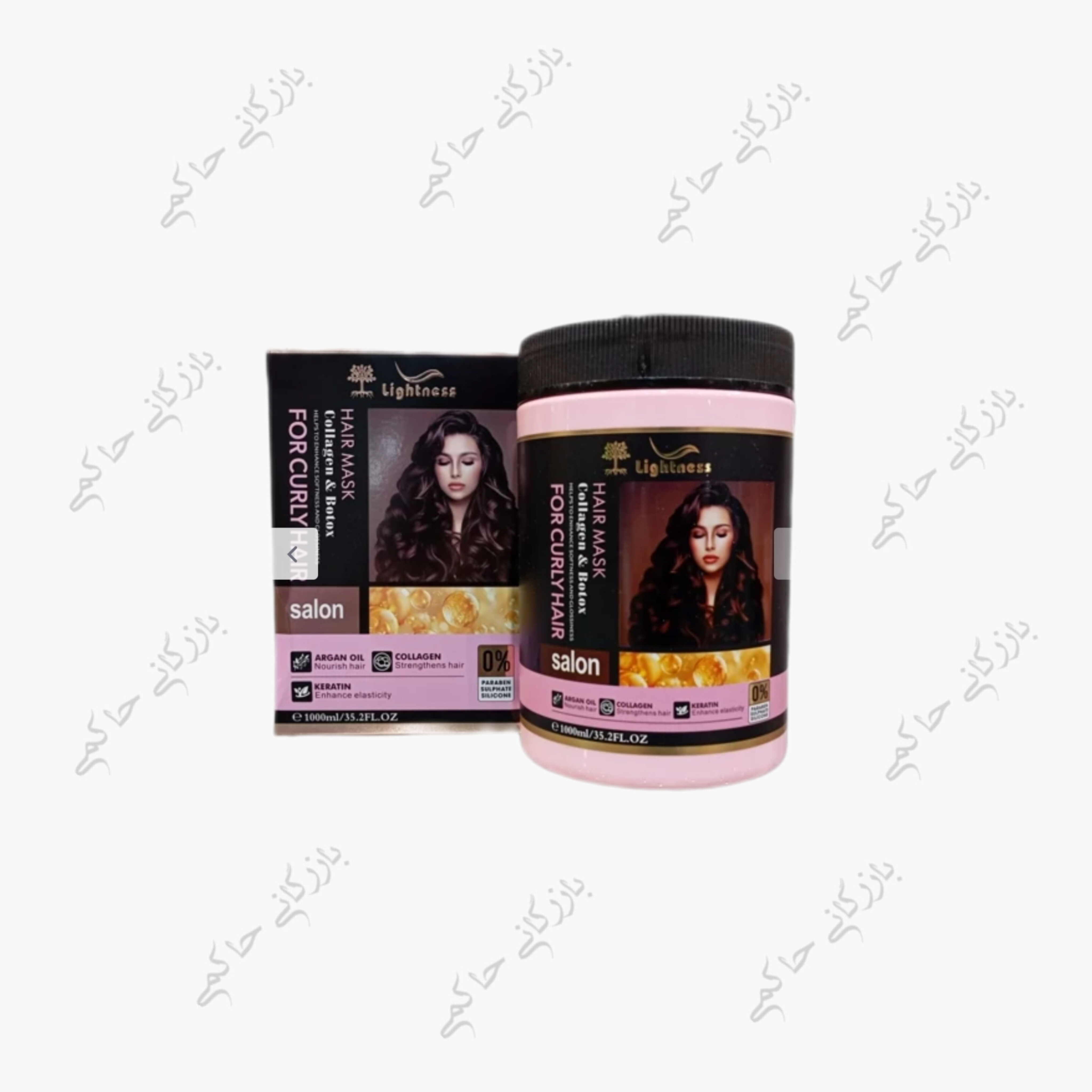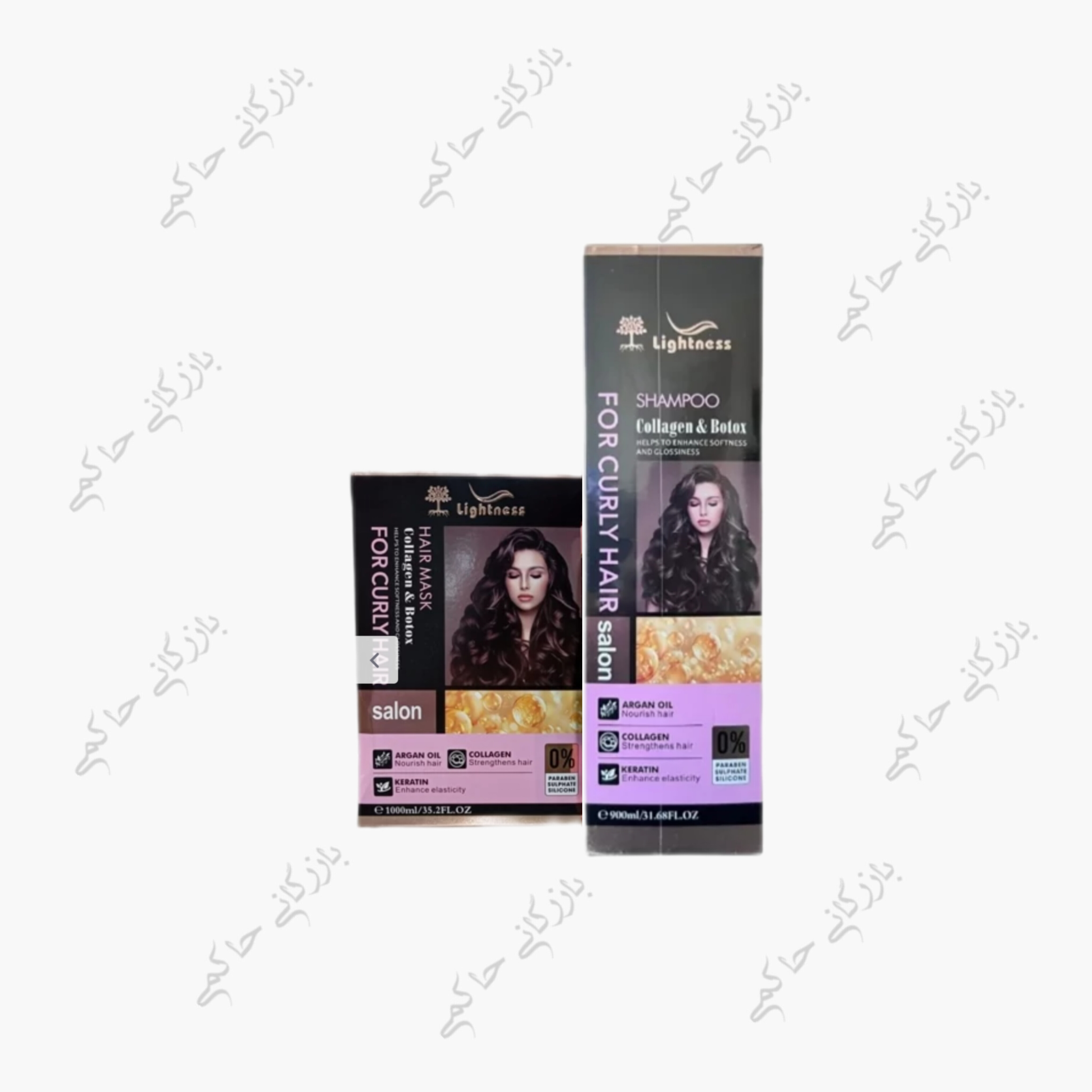 پک شامپو و ماسک لایتنس (واردات قانونی جلفا)مخصوص مو های فر و موج دار حاوی روغن آرگان، کلاژن، کراتین و بوتاکس 1000 میلی‌گرم | دارای قیمت عمده برای خریداران عمده
