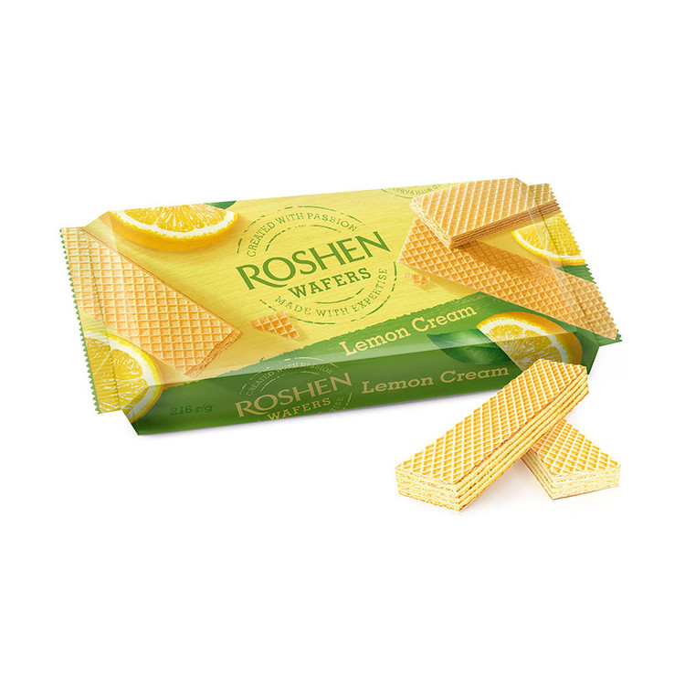 🍫ویفر ترد و خوشمزه چند لایه با کرم لیمویی،محصول اوکراین،برند روشن