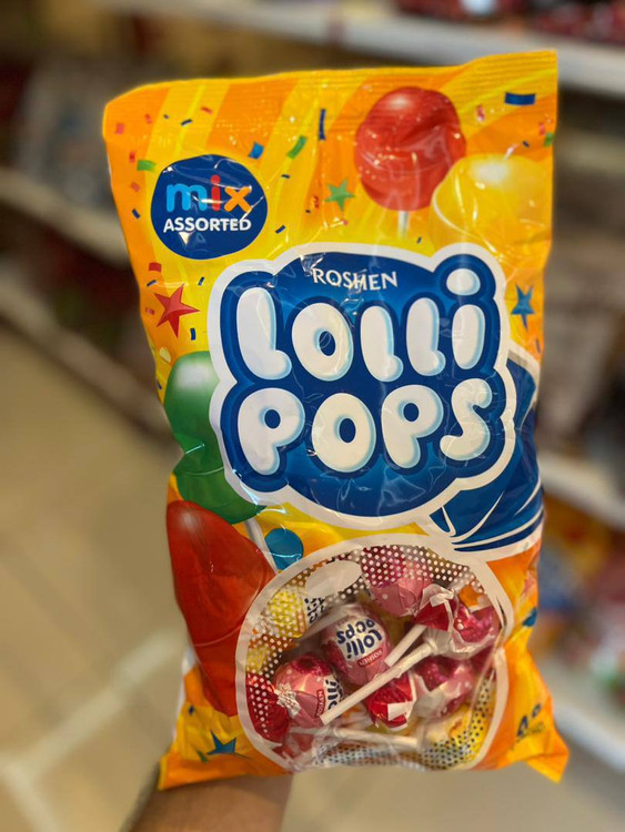 آبنبات چوبی لولی پاپز Lollipops روشن بسته 48 عددیآب نباتهای چوبی لولی پاپز روشن Roshen با طعمهای تمشک، توت فرنگی، آناناس میباشد. مواد تشکیلدهنده آن: قند، شربت گلوکز، تنظیم کنندههای اسیدیته (اسید لاکتیک، اسید سیتریک) طعمدهنده، رنگها (آنتی سیانینها، دی اکسید تیتانیوم، زردچوبه، بتا کاروتن، نیلیکارمین) میباشد.