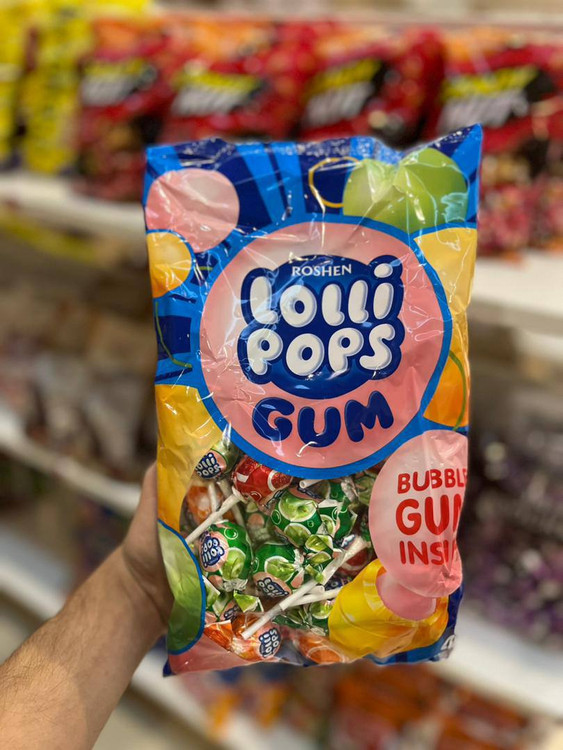 آبنبات چوبی آدامسی لولی پاپس روشن 48 عددی 1 کیلوگرمی