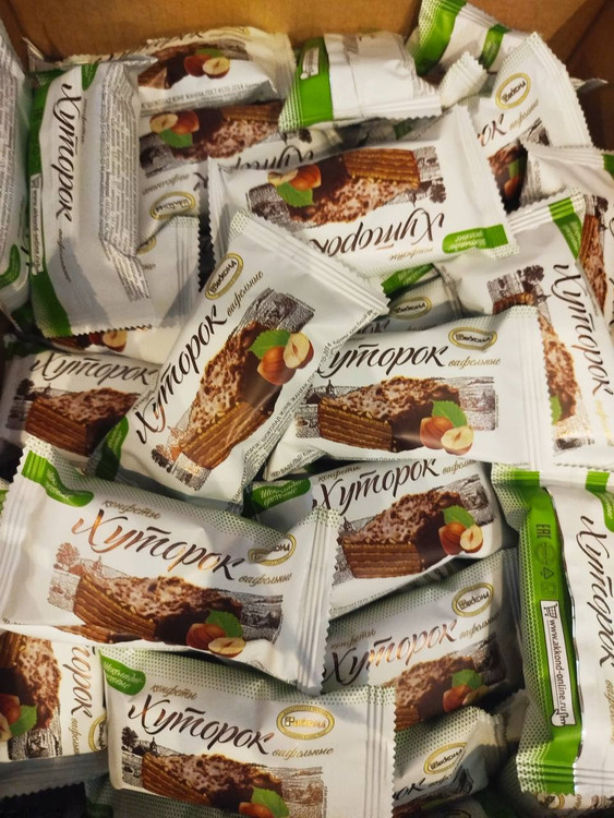 ویفر روسی زیموپوک فندقی با روکش شکلاتی__در وزن‌های ۵۰۰گرمی و یک کیلوگرمی_دارای قیمت عمده برای خریداران عمده.