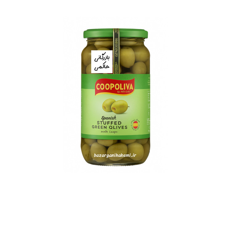 زیتون شور سبز هسته دار کوپولیوا اسپانیا | ترشی زیتون سبز هسته دار اصل با کیفیت صادراتی۵۸۰گرمی